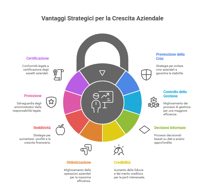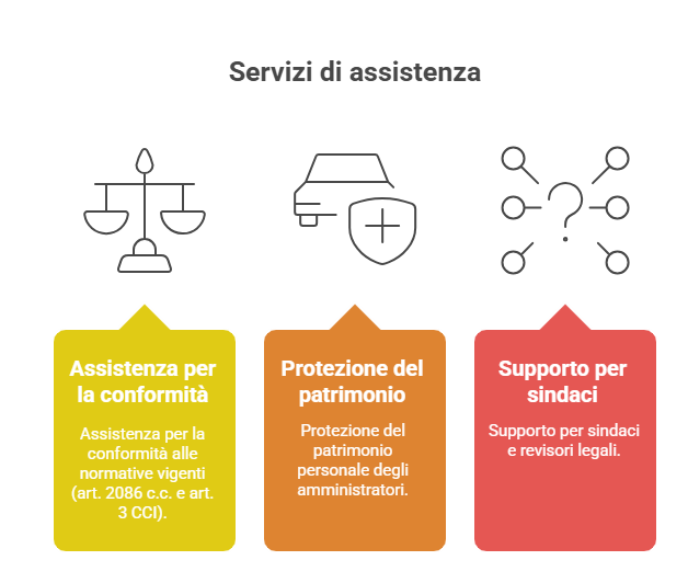 - Assistenza per la conformità alle normative vigenti (art. 2086 c.c. e art. 3 CCI)