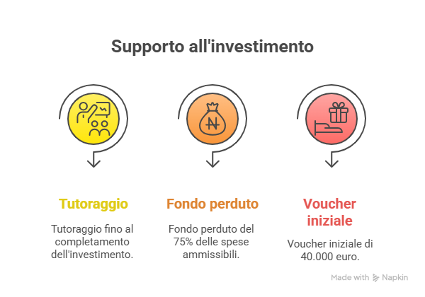 - voucher iniziale di 40.000 euro (maggiorazione 10.000 euro a paricolari condizioni)