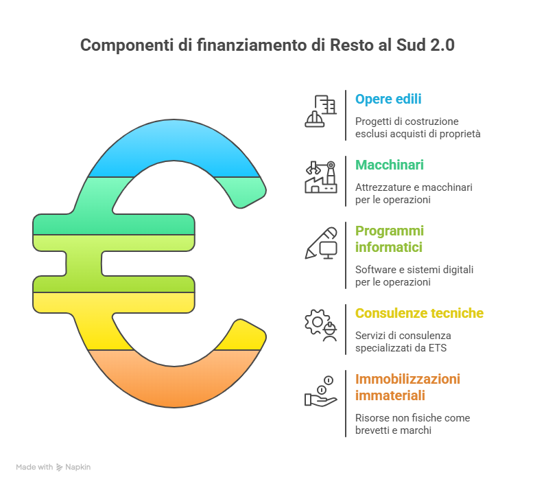 Resto al Sud 2.0 è un incentivo governativo rivolto a micro e piccole imprese, liberi professionisti e start-up con sede in Abruzzo, Basilicata, Calabria, Campania, Molise, Puglia, Sardegna e Sicilia. L’obiettivo è sostenere la creazione e lo sviluppo di nuove attività imprenditoriali, promuovendo innovazione, digitalizzazione e occupazione.